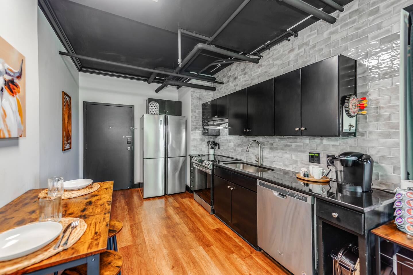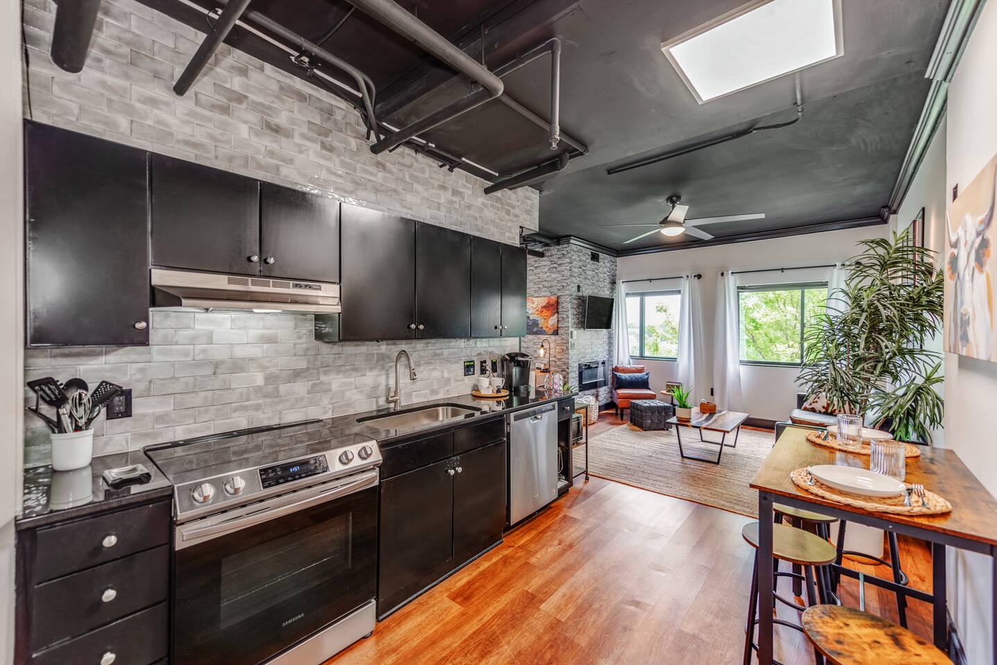 Discover the charm of this thoughtfully designed 485-square-foot condo, featuring a stylish open-concept layout that seamlessly integrates the kitchen, living room, and bedroom areas. For added privacy, a curtain elegantly separates the bedroom from the living space. Enjoy breathtaking views of the lush trees lining 11th Avenue, creating a serene atmosphere right outside your window. This unit is fully equipped with all the essentials to ensure a comfortable stay, including a complete kitchen and bathroom. Unleash your culinary skills in the spacious oven, or elevate your dining experience by heading up to the top floor for an al fresco meal after grilling. This condo is not just a place to stay; it’s a perfect retreat that combines comfort, style, and convenience.