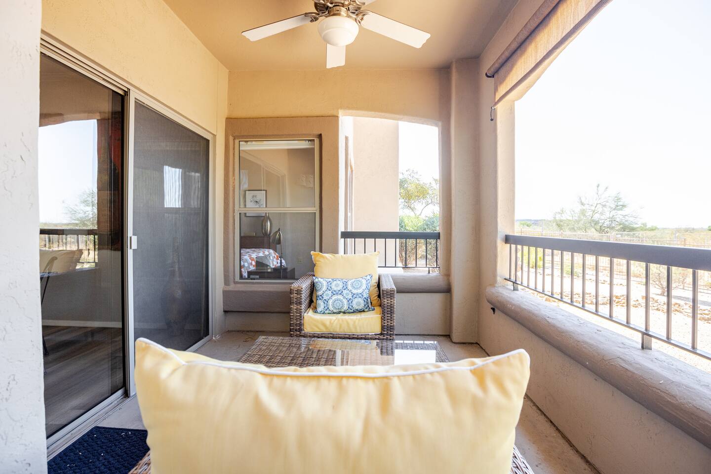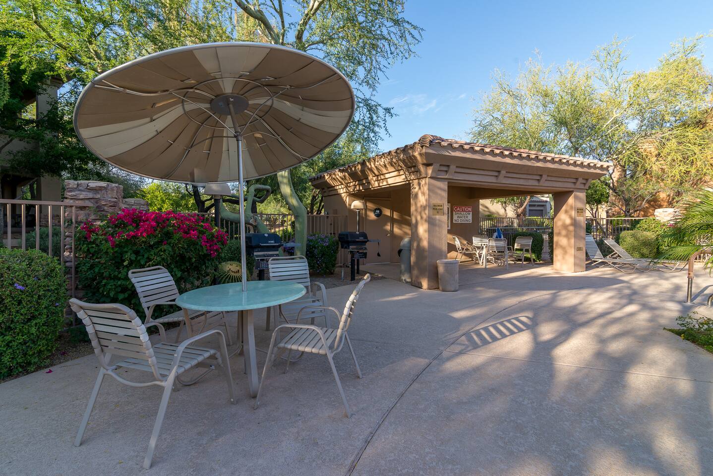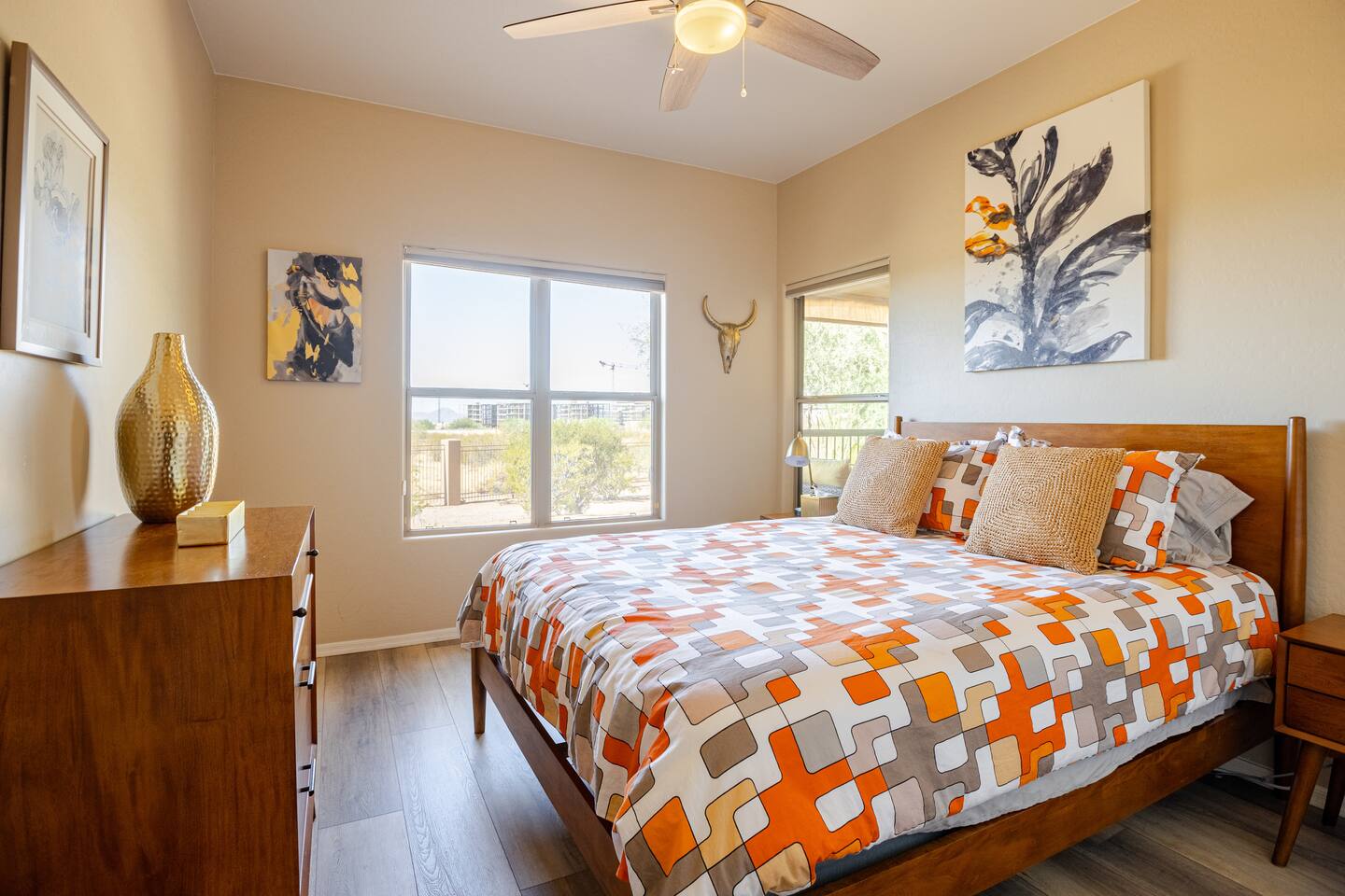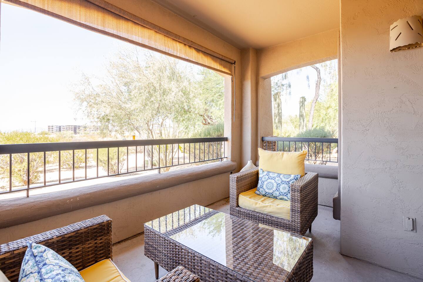 Escape to this ground-floor, 3-bed, 2-bath Scottsdale condo in the Grayhawk community. Perfect for 6 guests, this retreat offers stunning mountain views, a private balcony, and access to 3 heated pools & a fitness center. Ideal for your winter getaway, it's minutes from top events and the Mayo Clinic. Enjoy stylish comfort and modern amenities in your home away from home.