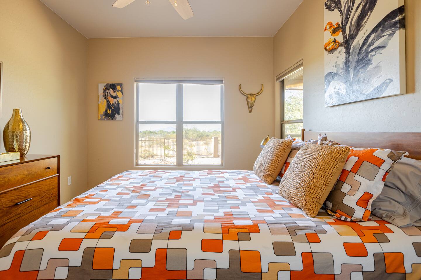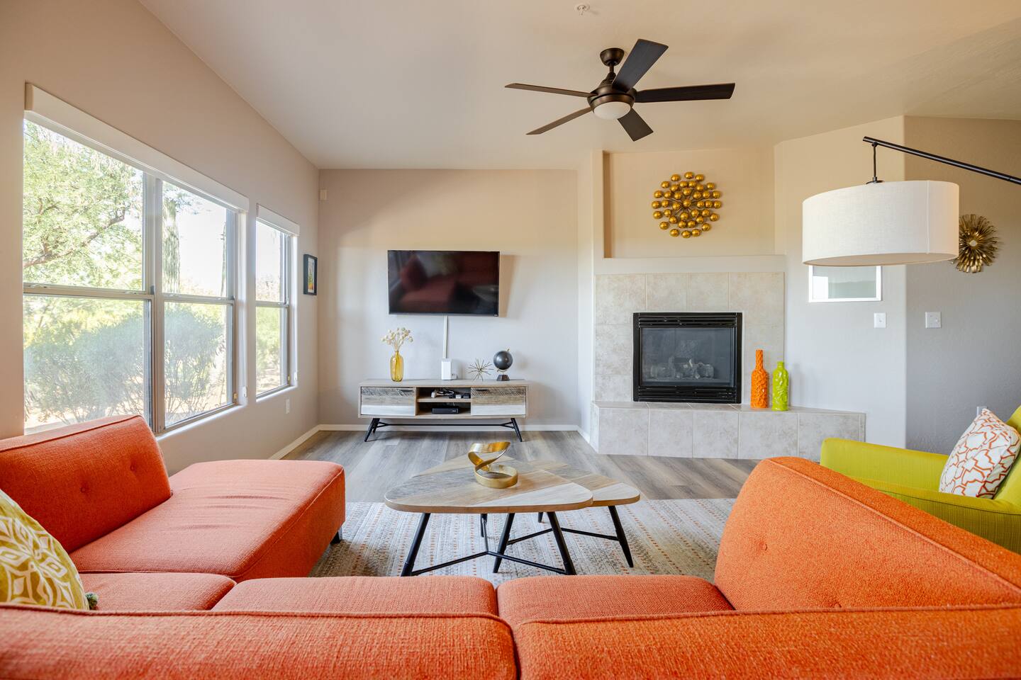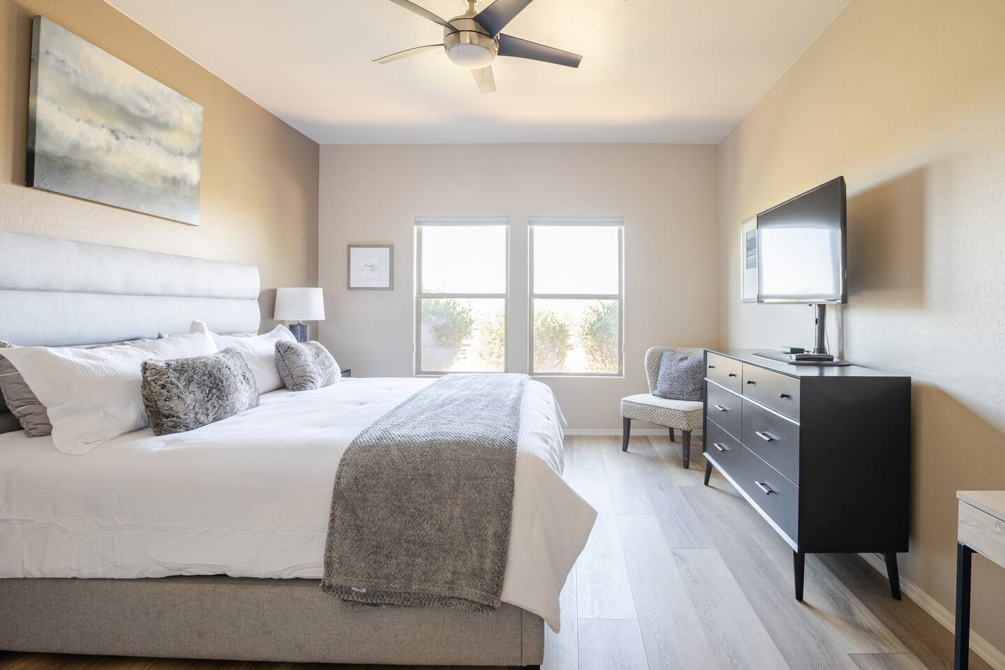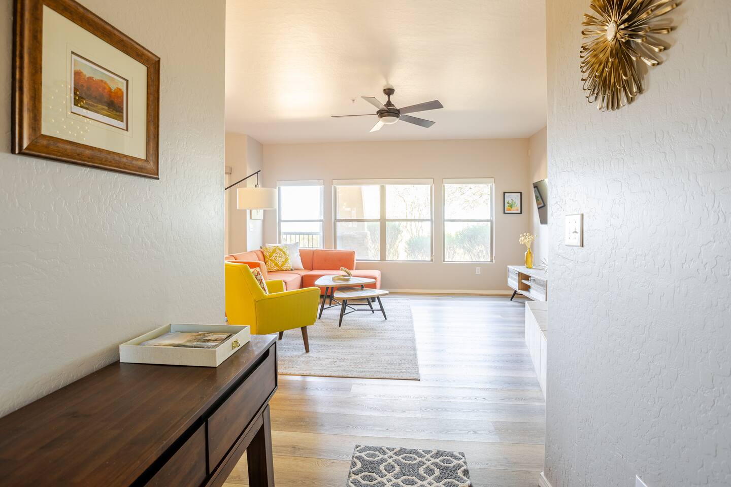 Escape to this ground-floor, 3-bed, 2-bath Scottsdale condo in the Grayhawk community. Perfect for 6 guests, this retreat offers stunning mountain views, a private balcony, and access to 3 heated pools & a fitness center. Ideal for your winter getaway, it's minutes from top events and the Mayo Clinic. Enjoy stylish comfort and modern amenities in your home away from home.
