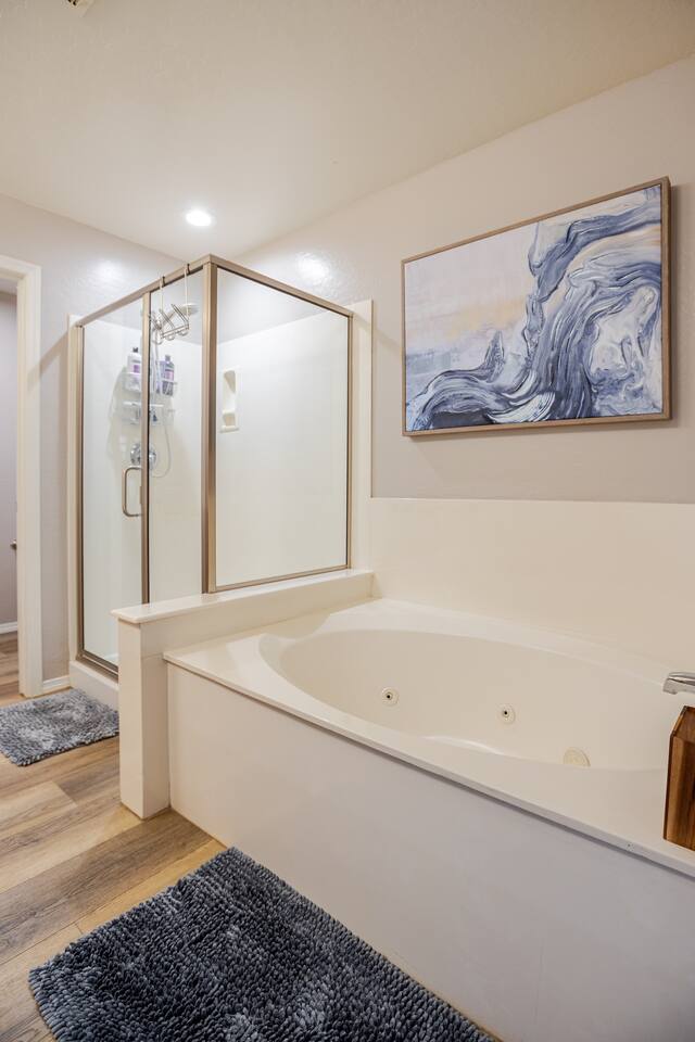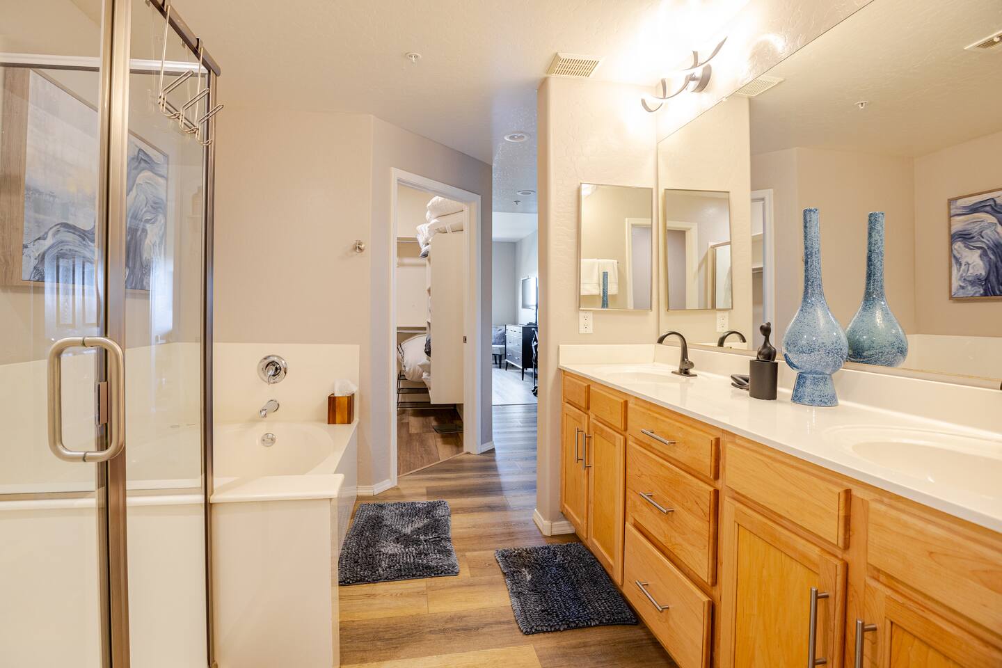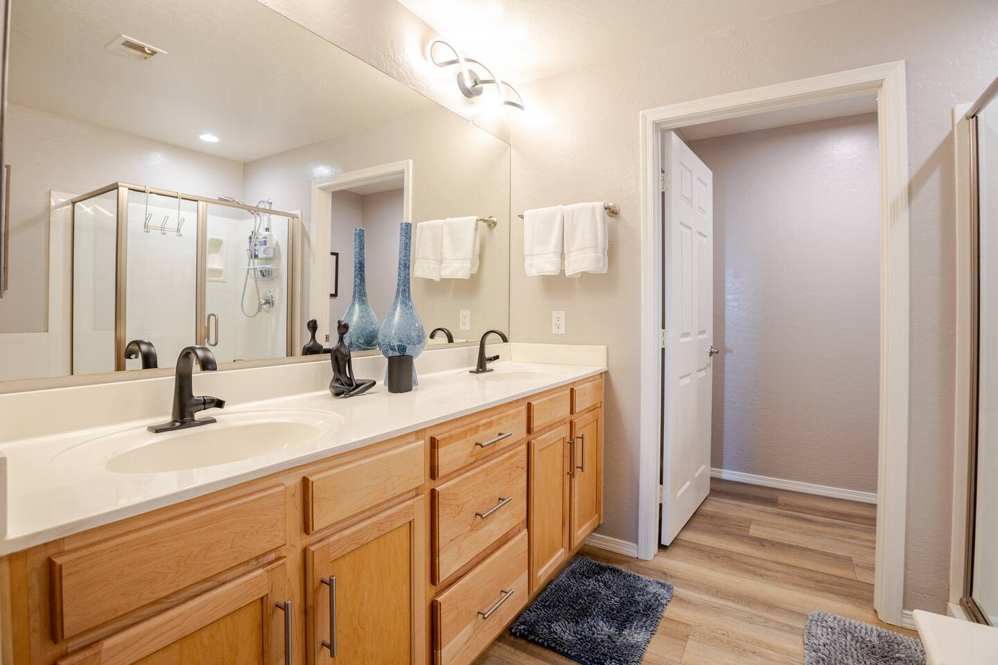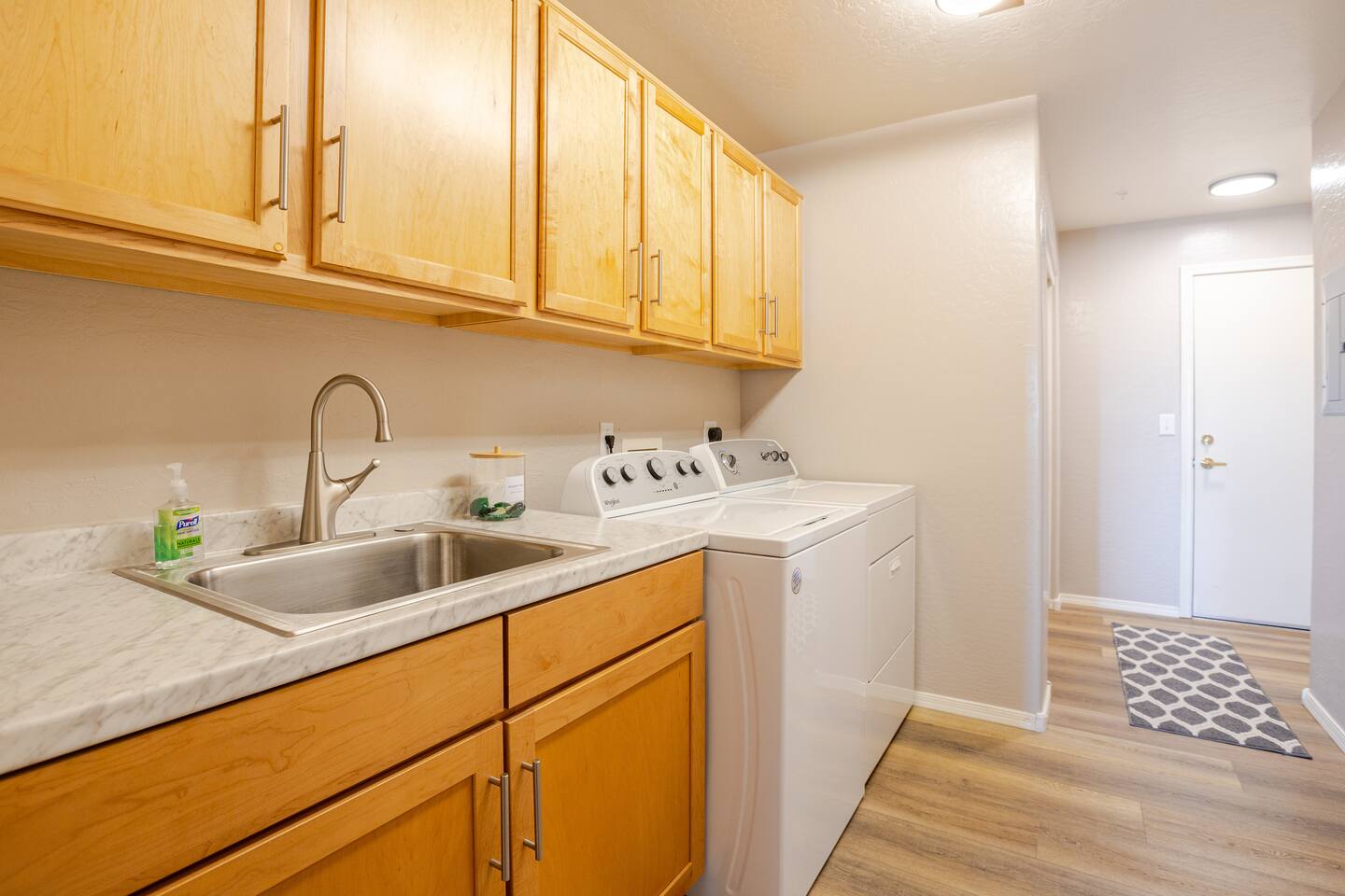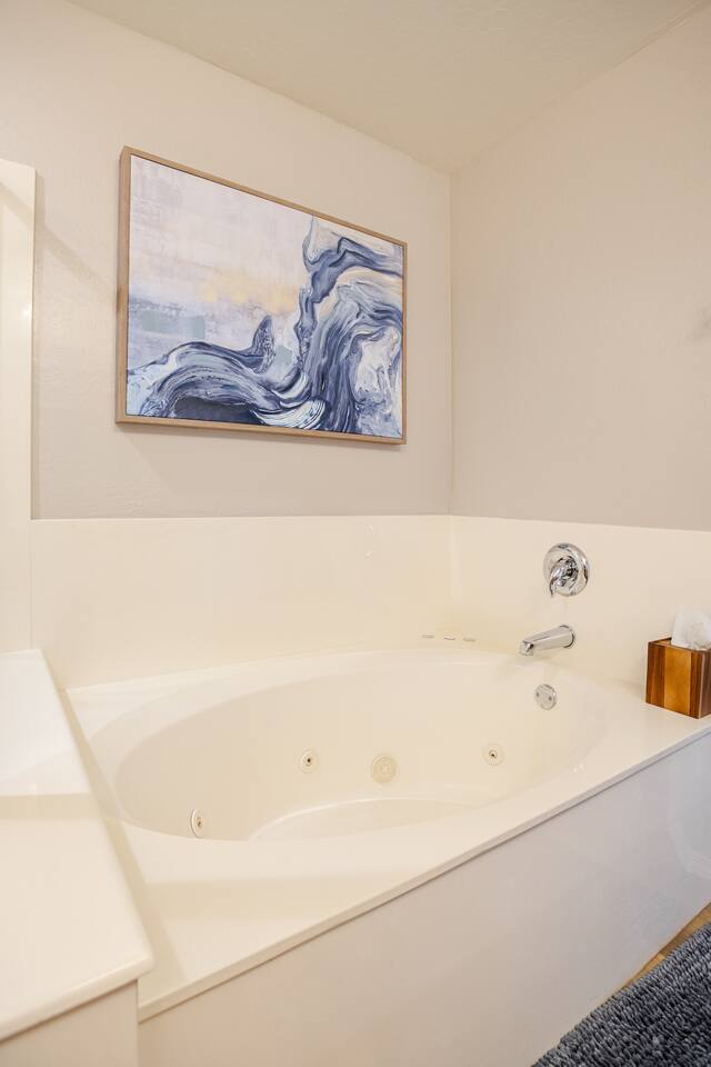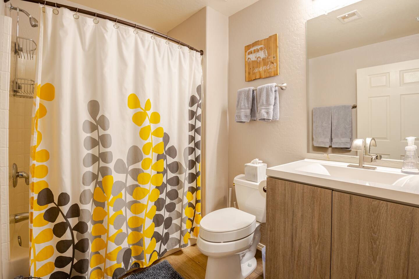 Welcome to your 1,729 sq ft Scottsdale sanctuary, where stylish mid-century design meets modern comfort. The open-plan living area is perfect for relaxation, and the private furnished balcony offers a chance to enjoy the fresh Arizona air. This condo comfortably sleeps six guests. Bedroom Configuration: * Master Bedroom: A spacious retreat with a king-sized bed, an ensuite bathroom featuring a jetted tub, and a dedicated workspace. * Guest Bedroom 1: A cozy room with a queen-sized bed. * Guest Bedroom 2: Features two extra-long twin beds, perfect for kids or friends. Amenities Provided: * Fully equipped kitchen with all cooking necessities. * Fresh linens, bath towels, and pool towels. * In-unit laundry room with a washer, dryer, and iron. * Hair dryer. * Family-friendly items: A porta-crib and booster chair are available for your little ones.